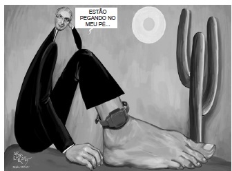 A charge faz referência a uma famosa pintura de Tarsila do Amaral. Nesse tipo de intertextualidade, encontramos o seguinte recurso:
