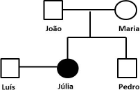 A fibrose cística é uma doença autossômica recessiva que afeta, principalmente, os pulmões, o pâncreas e o sistema digestório. O heredograma abaixo representa uma família, na qual a filha do casal João e Maria, chamada Júlia, foi acometida pela doença.
