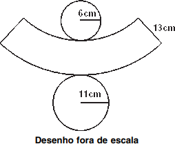 A figura abaixo representa a planificação de um tronco de cone reto com a indicação das medidas dos raios das circunferências das bases e da geratriz.
