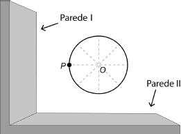 O brinquedo está situado nas proximidades de duas paredes verticais e perpendiculares entre si. Seja D a distância de P até a parede I.