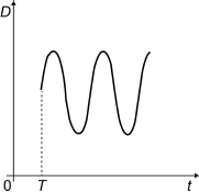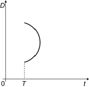 O gráfico que melhor representa, em função do tempo t a partir do instante T, a distância D é