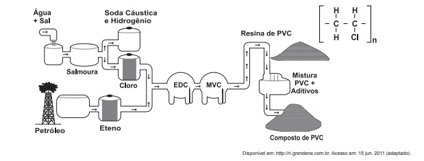Para a produção do PVC, a obtenção do cloro é proveniente do processo de