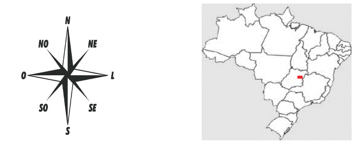 A rosa dos ventos foi uma invenção técnica de orientação espacial empregada por navegadores desde os fenícios, na Antiguidade. Nos mapas, a rosa dos ventos tem a função de identificar os pontos cardeais e colaterais. A partir de um ponto referencial qualquer no mapa, podem-se estabelecer a direção e a posição geográfica dos diversos lugares. No mapa, temos a indicação do Distrito Federal (Brasília).