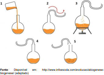 A teoria da geração espontânea, segundo a qual os seres vivos podiam surgir de matéria não viva, perdurou por muito tempo. Porém, com a expansão do conhecimento científico e os experimentos rigorosos realizados por Louis Pasteur, entre outros pesquisadores, a crença na abiogênese não resistiu. Em um experimento, esquematizado a seguir, Pasteur preparou frascos de vidro com caldos nutritivos e amoleceu seus gargalos no fogo, o que permitiu esticar e curvar os gargalos, deixando-os em forma de um pescoço de cisne.