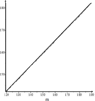 Admita que a altura h de um adulto, dada em centímetros, esteja relacionada com a média aritmética da altura de seus pais m, dada em centímetros, pela igualdade h = 73,96 + 0,57 m.