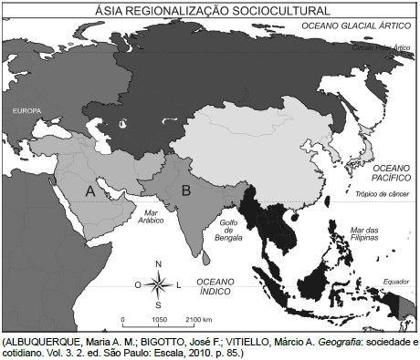 As regiões que correspondem, correta e respectivamente, às letras A e B, localizadas no mapa acima, são