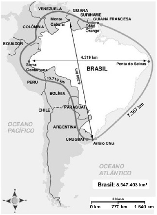 ocupa tamanha extensão longitudinal que, além de ter espaços em diferentes hemisférios, contém Unidades da Federação localizadas para além do Trópico de Capricórnio.