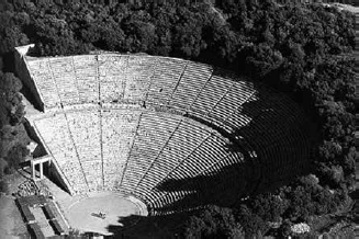 As duas grandes civilações da Antiguidade, Grécia e Roma, construíram anfiteatros grandiosos, com enorme capacidade para abrigar seus frequentadores. Na Grécia, o Anfiteatro de Epidauro, construído em IV a.C e o Coliseu, construído em Roma, entre 72 e 80 d.C., são dois belos exemplos. Entretanto, mais do que apenas diferenças arquitetônicas, tais construções exemplificam as diferenças entre essas duas civilizações. Considere as afirmativas abaixo.