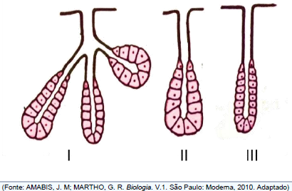 AnaIise a figura abaixo, que apresenta três tipos de glândulas exócrinas.