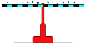 Colocando B1 em e, B2 em c, B3 em f, B4 em l e B5 em i, a balança ficará em equilíbrio na horizontal.