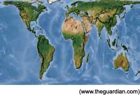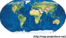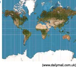 Considerando conhecimentos sobre cartografia, assinale a alternativa que apresenta o planisfério elaborado com base na projeção descrita no excerto.