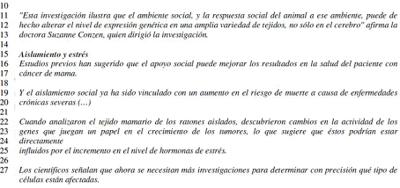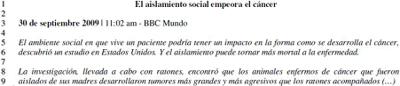 http://www.el-nacional.com/www/site/p_contenido.php?q=nodo/101661/Ciencia+y+Bienestar/El-aislamiento-socialempeora- el-c%C3%A1ncer Visitado el 12 de octubre de 2009. (Adaptado)