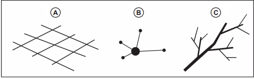 INSTRUÇÃO: Responder à questão com base nas afirmativas que tratam das redes de transporte, associando-as aos desenhos que representam três tipos de rede de transporte.