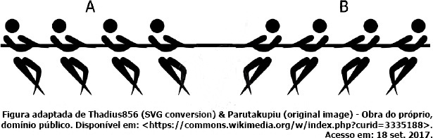 O cabo-de-guerra é uma atividade esportiva na qual duas equipes, A e B, puxam uma corda pelas extremidades opostas, conforme representa a figura abaixo.