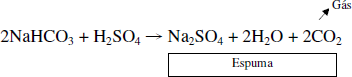 - é utilizado também na fabricação de extintores de incêndio à base de espuma, onde o NaHCO3 sólido e o H2SO4 em solução são colocados em compartimentos separados. Quando o extintor é acionado, o NaHCO3 mistura-se com o H2SO4 e a reação produz CO2, que apaga o fogo.