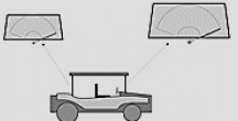 Considere um automóvel com o limpador de para-brisa dianteiro (raio de 40cm) e traseiro (raio de 20cm), como mostra a figura ao lado.