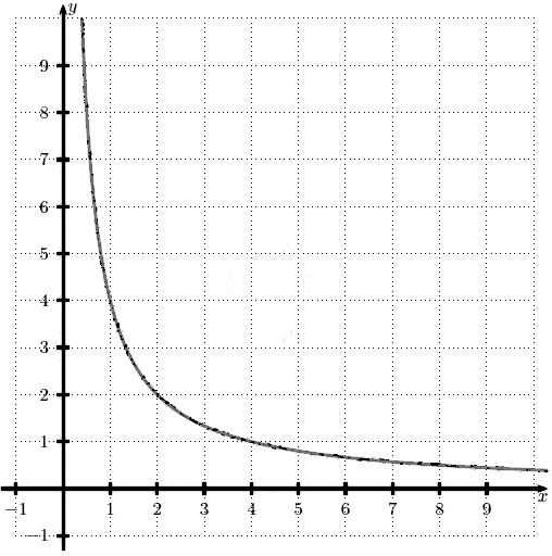 O gráfico a seguir representa a função f(x) = \(\frac{5}{x}\) , definida no conjunto dos números reais positivos.