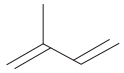 O isopreno é um composto orgânico que é utilizado como monômero para a fabricação do poliisopreno, a borracha, através de uma reação de polimerização. Sua fórmula estrutural é apresentada a seguir.