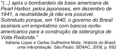 O texto se refere aos acontecimentos que precederam a entrada do Brasil, em 1942, na Segunda Guerra Mundial. Pode-se afirmar que o governo brasileiro, antes de romper sua neutralidade,