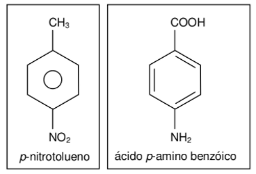 Os compostos p-nitrotolueno e ácido p-amino benzoico (também conhecido como PABA) possuem a mesma fórmula molecular, C₇H₇NO₂, porém apresentam fórmulas estruturais muito diferentes:
