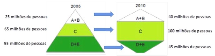 O percentual de consumidores das classes A e B em 2005 foi de 25%.