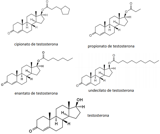 l Todos os quatro derivados da testosterona possuem a função química éster, já a testosterona a função química álcool.