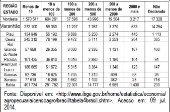 Os dados da tabela permitem afirmar que, em números absolutos, o estado do Maranhão apresenta, entre os estados da região Nordeste,