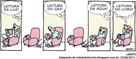 Na tirinha, os diferentes objetos de leitura põem em oposição dois modos de relação com o tempo, que podem ser definidos como: