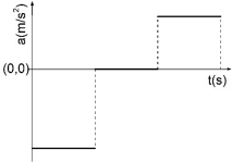 Um automóvel viaja por uma estrada retilínea com velocidade constante. A partir de dado instante, considerado como t=0, o automóvel sofre acelerações distintas em três intervalos consecutivos de tempo, conforme representado no gráfico abaixo.